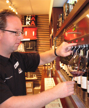 JOHN EDENS/The Southland Times TOAST TO AUSTRALIA: Wine Tastes Central Otago duty manager Thomas Jack says the Queenstown outlet mostly exports pinot noir to Australia, the US and Japan. |