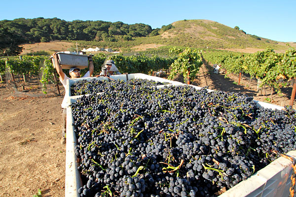 In Paso Robles, three years of drought ended with a winter of above average rainfall. With mild weather during set followed by the relatively cool year, vineyards used the available water to hang slightly more fruit than average. This was the year of the smart farmer; those growers who were able to keep their fruit/vine ratio in balance and stay ahead of mildew pressures, while accounting for the cooler year, managed to harvest high quality fruit. The winning variety for Paso Robles this year appears to be Syrah, with 25 percent more color than average, and exceptional flavors and tannin balance. October rains that hit some regions in California largely bypassed Monterey and Paso Robles, where rainfall was generally less than one-half inch. Nevertheless, an early frost hit Paso the morning of October 27, accelerating the harvest of Cabernet Sauvignon and Mourvèdre.