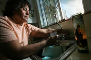 Because of contaminants, Maria Elena Avila Orozco Martinez must use an in-sink water filter in order to drink water from the tap in her East Orosi home.