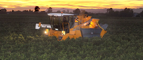 SCOTT HAMMOND Picking begins: Dawn breaks over a harvester picking pinot noir from Hunter's Wines' The Bridge Vineyard near Renwick this morning
