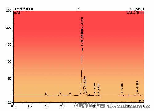 从上述分析情况来看,果汁中5—羟甲基糠醛的含量很低。主要是要在果汁的压榨工艺过程中,在高温或弱酸条件下脱水等工艺条件及卫生条件的严格控制下,最大程度上降低5—羟甲基糠醛成分的产生。