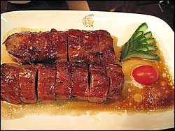 My pick of the signature dishes is roasted pigeon leg stuffed with preserved liver sausage (HK$58 per piece).