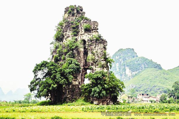 从百朋街往东直行约3公里,在周平和矮山村的田垌间,一座孤峰兀立的小石山横“野”出世。这就是酒壶山。因其形状酷似一尊酒壶而得名。它的可观之处,不仅在鬼斧神工的物象造型,还有名士留下的摩文章来源华夏酒报崖石刻。“此是神仙真洞府,人间岂独一罗浮?”(清道光年间当地名士覃少海题酒壶山)自然景貌与人文珍迹相得益彰,构成了此处名胜的看点。