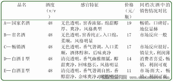 产品的好坏,重要的是通过市场和消费者来衡量。从表2中可以看出,同一档次的酒(价格区间在10元—20元之间),48%(v/v)白酒I型和II型,其风格明显,有自身特点,与其他酒类相比更具有醇厚爽净的自身优势,更重要的是所调产品对酒企有很大的利润空间,对市场是赢得了市场,得到了消费者的广泛认可。