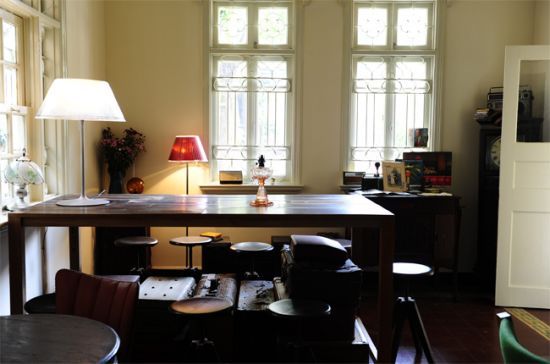 目前作为营业用途的是一楼及整个半开放式的院子。五个房间分别以《纯真博物馆》书中的章节来命名:“ 凯末尔先生您很久没来了”这样亲切而生活的问候在你一进门就会看到;有着四扇美丽花窗的房间说,“我的整个人生和你的连在了一起”;最小的一间,被打造成了“柠檬电影公司”,只容两人亲切交谈,旁边陈列着整柜的老照片,那是一个家族与厦门历史、华侨历史的黑白记录;而在那间名叫“去往另一个世界的旅程”的房间里陈列重量级的庄园酒品,细碎的石子铺了一地,一脚踩下,就仿佛走进葡萄酒庄园的小径;还有一个房间,则将令你“无法起身告辞”。随着一楼回廊旁的旋转楼梯上到小露台,你还可以一窥华新路的“侧脸”。
