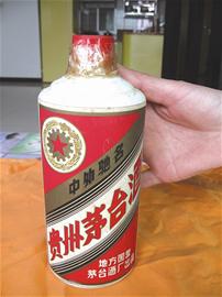 昨日,汉口车站路居民姜女士向记者展示了收藏多年的一瓶茅台酒。其瓶身包装纸已泛黄,正面左上角有一颗五角星,底部写着“地方国营茅台酒厂出品”(如图),背面有茅台酒简介,其出厂日期依稀显示为1978年9月4日,但瓶身上没有注明该酒的浓度和容量。