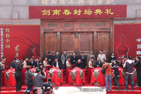 4月9日,为庆祝伟大的中国共产党成立90周年,剑南春集团在绵竹剑南春酒厂隆重举行剑南春封坛典礼仪式,共和国三位上将一行共八位将军共同为剑南春庆祝伟大的中国共产党成立90周年纪念封坛。参加此行封坛仪式的将军有:成都军区、北京军区原政治委员谷善庆上将;全国政协常委、第二炮兵部队原司令员隋永举上将;兰州军区原司令员李乾元上将;成都军区原副司令员陈世俊中将;原国防大学系主任黄彬上将;解放军八一书画院院长、中国军事博物馆原馆长袁伟少将;北京卫戎区副政委陈世文少将;成都军区空军副司令员朱心文少将;武警四川总队后勤部何冬云副部长。绵竹市委兰开驰书记;绵竹市政府任钊市长;剑南春集团董事长、党委书记、总经理乔天明陪同将军一行参观了剑南春传承1500年不间断酿酒的活文物——“天益老号”酿酒古作坊、中国目前最大的单一陶坛原酒陈贮库,以及剑南春新落成的现代化包装中心,并在剑南春酒史博物馆前隆重举行了剑南春酒坛封坛仪式。仪式上,剑南春董事长乔天明代表剑南春向各位将军赠送了剑南春典藏酒和东方红1949酒,将军们欣然接受,并挥笔为剑南春题词。