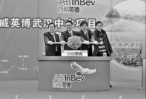 The Belgian beer giant has invested 17.9 million yuan ($2.72 million) since December 2010 in water-purifying equipment, joint work with the local government and about 3,000 meters of pipelines that connect the Wuhan factory with the local community and industrial park.