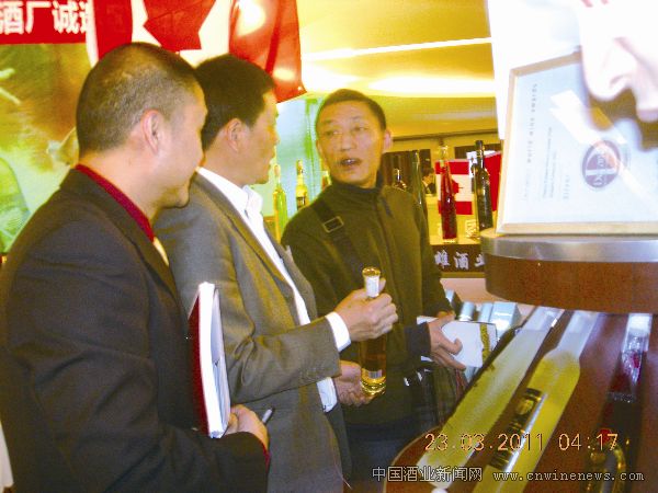 上海应雄酒业有限公司是一家专业进口加拿大尼亚加拉中高端冰酒的运营商,近年来,他们以市场为导向,积极引进品质优良、性价比高的产品,迅速打开了中国市场,成为国外冰酒进口领域的佼佼者。图为该公司营销人员在向客户推广新款冰酒。 &nbs