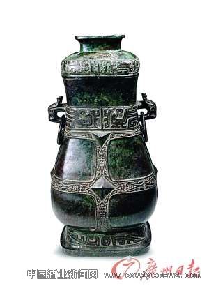文章来源华夏酒报、束颈、溜肩、鼓腹、平底、圈足,肩部双环钮,置有链状提梁、提梁与铺首衔环相连接,时间稍早的壶、腹部最大径在中部,稍晚者最大径靠近底部;扁壶,春秋一般器形为扁圆角状,直口、直径、溜肩、圆腹、平底,肩部一对环形耳,下腹部的一侧正中也设一环耳,扁壶上的纹饰反映着强烈的时代特征;钫,战国晚期出现,敞口,颈微敛,溜肩、鼓腹、平底、圈足,腹上部置铺首衔环;高柄小方壶,春秋晚期出现,壶作四阿式盝顶盖,各波上均置一环形钮,颈微束,溜肩, 鼓腹,平底,高柄,上粗下细,喇叭形圈足;匏(音同咆)壶以太原赵卿墓出土的春秋晚期匏壶最精美,壶盖为蹲坐鸟形,双爪抓蛇,壶口微侈,束颈,向一侧倾斜,溜肩垂腹,矮圈足,肩腹一侧设虎形提梁,虎口衔环,用链与鸟形盖尾相连接。战国初期匏壶增多,较大墓中一般都有一件。