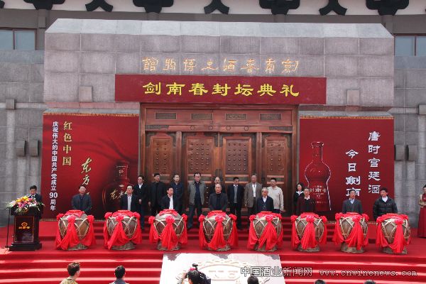 4月9日,为庆祝中国共产党成立90周年,剑南春集团在绵竹剑南春酒厂举行剑南春封坛典礼,共和国8位将军共同为剑南春庆祝中国共产党成立90周年纪念酒封坛。剑南春集团董事长、党委书记、总经理乔天明陪同文章来源华夏酒报将军一行参观了剑南春传承1500年不间断酿酒的活文物——“天益老号”酿酒古作坊、中国目前最大的单一陶坛原酒陈贮库,以及剑南春新落成的现代化包装中心,并在剑南春酒史博物馆前举行了剑南春封坛典礼。仪式上,乔天明代表剑南春向各位将军赠送了剑南春典藏酒和东方红1949酒,将军们欣然接受,并挥笔为剑南春题词。