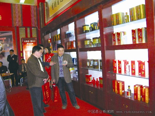 3月16日,本次山东糖酒会开幕之前,位于滨州国际会展中心特装展位的曲阜孔府家酒业有限公司的展厅里就挤满了参观者。图为
