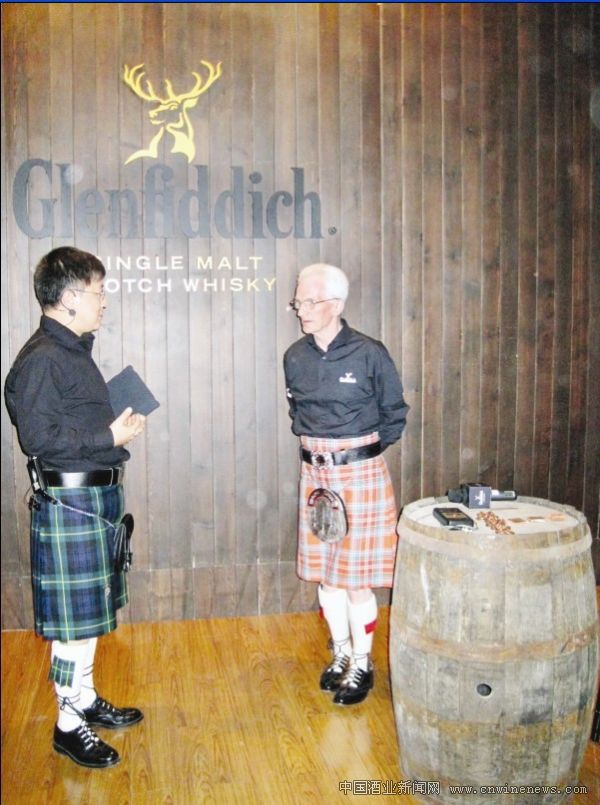 本报讯 4月13日,格兰菲迪单一纯麦威士忌品鉴会在北京举行,品鉴会现场,主办方格兰父子洋酒贸易有限公司通过体验式营销吸引了众多消费者,一方面现场模拟了酿造威士忌的厂区,并邀请了酒厂里资历最长的驻厂铜匠丹尼斯·贝恩,他身着传统的苏格兰裙,通过现场准备的威士忌蒸馏器设备为消费者重现了与众不同的酿造过程。另一方面,该公司还以年份为主线,针对普通消费者不太了解的30年、18年、15年、12年格兰菲迪单一纯麦威士忌进行了品鉴,揭开了单一纯麦威士忌的面纱。