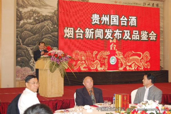 贵州国台酒业烟台专卖店开业典礼暨新产品上市品鉴会4月23日在烟台东山宾馆举行。来自烟台及其周边地区的酒类经销商、各界知名人士和新闻媒体记者100多人参加了本次活动。参会代表对国台酱香大曲酒的数款产品进行了品尝,大家一致认为,国台酒酒体丰满,晶莹剔透,酱香突出,回味悠长,是茅台镇酱香型白酒的典型产品。