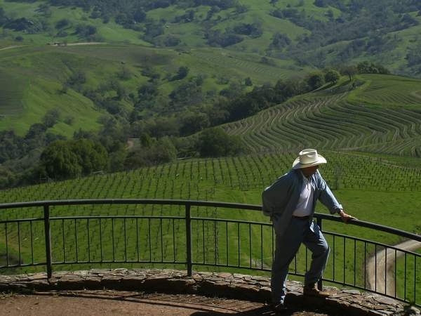Jess Jackson looks out over his vast vineyard domain in Sonoma County in 2005.