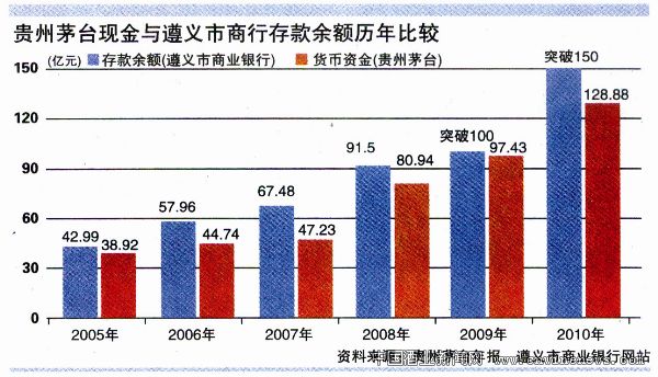 一家外资银行的首席财务官分析称,企业一般不会选择太多家银行开设资金账户,至多会选择2家—3家银行进行存款业务。该人士认为,从遵义市商行近些年来迅猛的发展速度,以及贵州茅台与其千丝万缕的联系来看,贵州茅台很可能就是遵义市商行的单一最大存款客户。