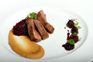 LAMB LOIN WITH CARAMELIZED TURNIP PUREE, BRAISED RED CABBAGE, BLACKBERRY AND ‘ROOT BEER SPICE’