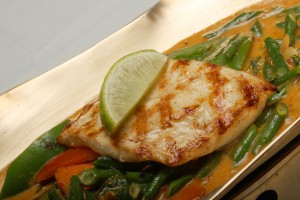 LOCAL COBIA WITH SPICY LONG BEANS AND RED CURRY SAUCE