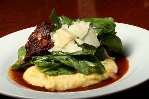 Braised beef short ribs with creamy polenta, arugula with an ice wine vinegar and extra virgin olive oil and shaved Parmesan, prepared by Chef Nick Morfogen of 32 East. (Libby Volgyes/The Palm Beach Post)