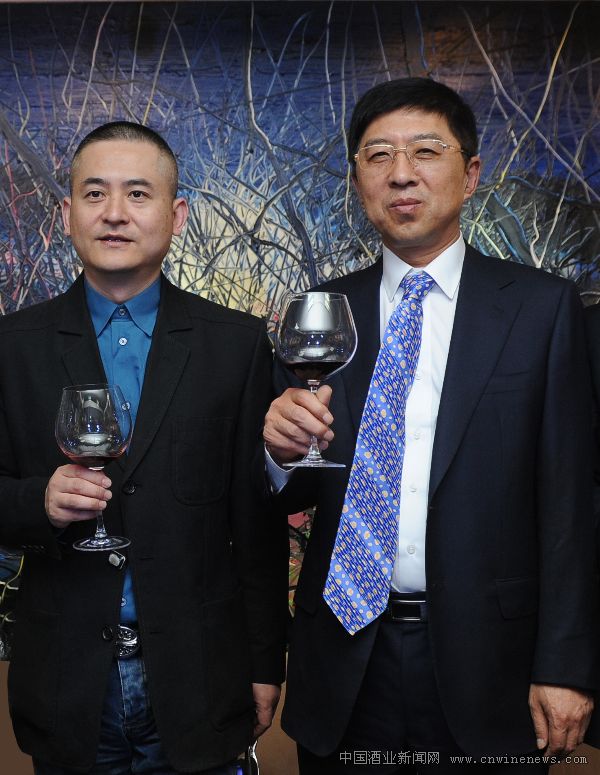 中粮君顶酒庄陈云昌总裁与艺术家曾梵志先生举杯合影