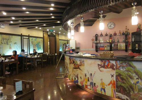 Traditional Korean art is displayed on walls and the front of the reception desk at Hae Dang Hwa Restaurant. [Photo: CRIENGLISH.com]