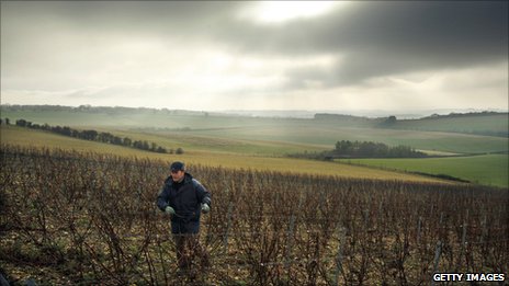 "The best place is probably the Sussex Downs. They have a much milder climate up there and the chalky downs are the same soil type as in Champagne."