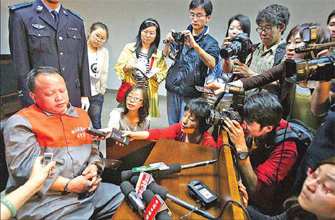 Guo Shudong, 37, the first drunken driver punished since the introduction of tough new road laws, faces the media after sentencing in Fangshan district on Monday. Provided to China Daily