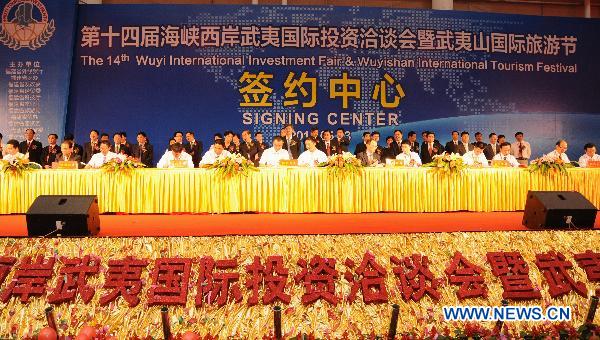 Photo taken on May 13, 2011 shows the signing center of Wuyi International Investment Fair, held in Wuyi City, southeast China's Fujian Province. (Xinhua/Liu Yang)