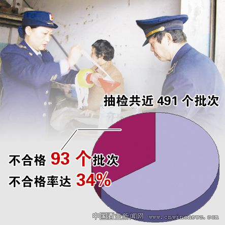 本报讯 5月12日,湖北省宜昌市质监局公布食品小作坊专项检查结果:对宜昌地区小作坊抽检的近491个批次中,不合格93个批次。散装白酒的抽检批次不合格率达到34%,令人担忧。