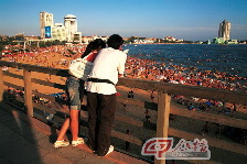 Of course, the city features many swimming beaches, which rival China’s top coastal resorts of Hainan Province in terms of water and sand quality. In summer, the sight of residents and visitors across town wearing only bathing suits is not uncommon, as they cross the streets to reach the beach. Because the beaches are usually crowded, many people change suits at home or in hotels before walking to the beach. The more conservative will sometimes cover up with a jacket during the trip.