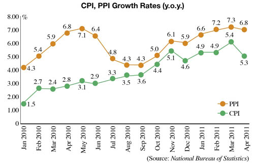 Facing long-term inflation expectations, some companies are simply raising product prices. According to NBS figures, in the first quarter the producer price index (PPI) rose 7.1 percent year on year and in April the index rose 6.8 percent.