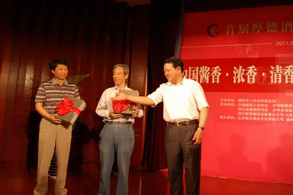活动中,来自全国各地的专家、酿酒大师和国家级评委对德州市酒文化博物馆珍藏的酱香、浓香、清香三大香型美酒进行了现场品鉴。各位专家对品鉴的美酒相当高的评价。据了解,德州市酒文化博物馆自2009你那着手中国酱香、浓香、清香三大香型原浆酒的定制收藏工作,历时19个月的辛苦运作,于2010年12月在三大香型发源地成功定制到酱香型酒927坛、浓香型酒2913坛、清香型酒1002坛,该定制酒将在博物馆长期收藏。山东省收藏家协会王济红会长向山东旭日酒业文化有限公司颁发了收藏牌匾。
