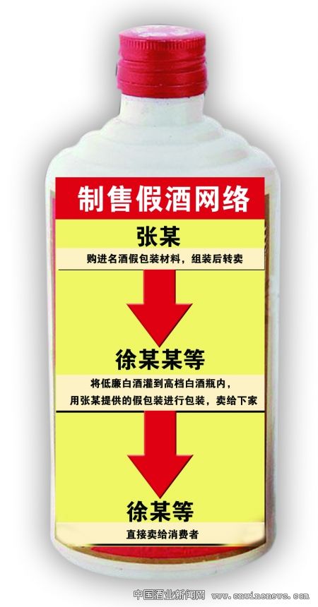 “张某就是这个制售假酒网络的核心人物,也就是‘金字塔’的塔顶。”王曦介绍,首先由张某进货,将购来制作假名酒的包装和标识进行组装,并转卖给徐某某等下家制作假酒。