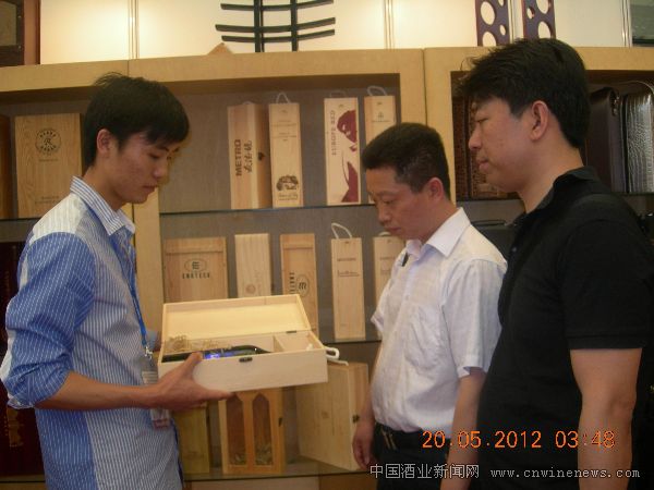 上海飞展实业有限公司以质文章来源华夏酒报量为根本,强化从原料采购到销售使用的全过程质保体系。生产的各种葡萄酒包装盒以过硬的产品品质赢得了用户的信赖,产品远销全国各地。图为展销会上该公司销售人员细心向客户介绍产品。