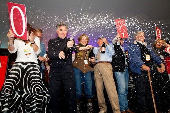 Doubling down became a theme to create the top lots for the day, occurring again at Lot 15's offering from BOND with two bidders doubling the $120,000 bid to $240,000. Then again at Lot 35 with Raymond Vineyard's offering bringing $195,000 times two at $390,000. Proud, first-time father of newborn twins and owner of Raymond Vineyards, Jean Charles Boisset was on-hand to toast the winning bidders.