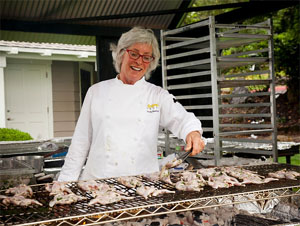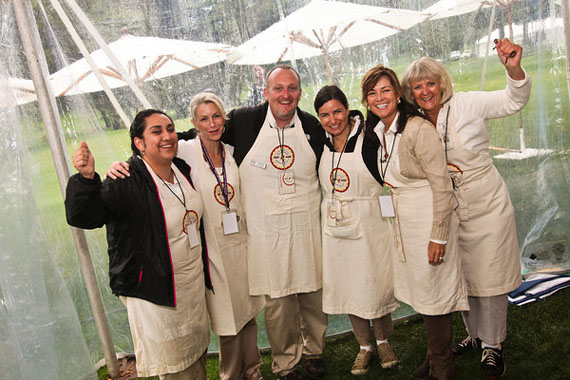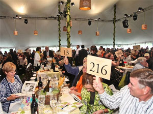 The fairway at Meadowood, which has served as the venue for the Live Auction since its inception in 1981, has always been blessed with perfect weather, but never rain and temperatures in the mid-50s in June. Originally planning to offer open-air seating, the event organizers quickly rallied to find additional tents. And, all of the expected 800 attendees, chefs, and vintners appeared as planned - inside tents, and many with rain boots.