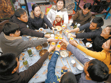Family members propose a toast for a happy and prosperous new year at a Spring Festival celebration in this file photo. In China, drinking is the major part of the festvities.