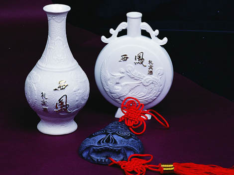 Since the wine is made in the west of Fengxian County, thus it is named Xifeng wine (Xi means west). According to historical record, Xifeng wine of the Tang Dynasty enjoyed the praise of "Made from springs; tastes pure and sweet". It is made of local grain sorghum, barley and pea, with zymosis period of only 11 days, the shortest among all wines.