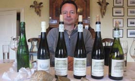 We tasted 12 wines despite his original plan to open six bottles initially. Starting with a modestly priced Domaine Gobelsburg 2010 (88), we tasted several wines including those from their Erste Lage vineyards (a concept being used and promoted by VDP in Germany). Although most of the vineyards were not affected by phylloxera, they were replanted after the World War II and so have some very old vines whose fruit gives wines of concentration, complexity, minerality and often spiciness. Grüner Veltliner 2010 from the Erste Lage (First Growth) oldest Vineyard -since1951 Kammerner Renner (92) and First Growth Lamm (93) were delicious wines both, but the Renner 2004 (94) was a good example of an age worthy Grüner Veltliner –it was an elegant wine with plenty of fruits and balance and a persistent and very long after taste, truly a sexy wine. Younger Rieslings were quite approachable and drinkable- like the First Growth Heiligenstein 2010 (91) but the real charmer was Gaisberg Riesling- crisp and vibrant, full of the pleasant ‘petrol-like’ and apple flavour, elegance and finesse with a strong impression on the back end with a long after taste (95). As Michael explained, ‘the Rieslings should be drunk in the first two years after production when they start changing their character. Then one should wait till 6 years after the harvest after which the character does not change much.’ This Riesling was not rocking’ and rolling’ but was certainly doing a tango on the tongue. Before I left the winery, Michael Moosbrugger had me convinced that a well made Grüner Veltliner from grapes of high quality vineyards, and of course the Riesling can mature for decades. But the amount of enjoyment depends upon how the palate of the drinker has evolved. |