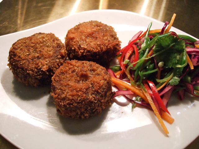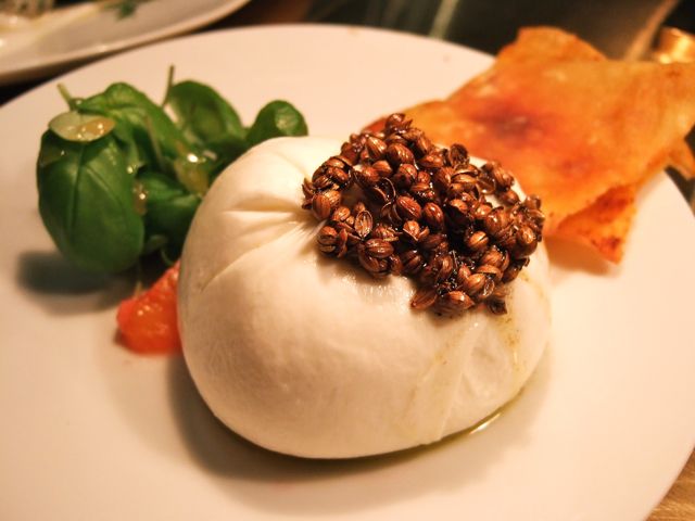 A light, lush 2009 Versus Riesling from Stajerska in Slovenia was lovely with a plate of burrata, blood orange and coriander seeds while the earthy Etna Bianco ‘Biancodicaselle’ matched better with a plate of grilled hake kebabs with lemon pickle and yoghurt. The best match though was a light fragrant Austrian blend of Pinot Noir and Zweigelt, Wien 2 from R & A Pfaffl which was just knockout with some spicy beef brisket croquettes and Asian Slaw. Oh, and I forgot the 2004 Vin Santo del Chianti Rufina from Fattoria di Basciano which sommelier Honami Matsumoto brought with the cardamom rice pudding with rose syrup and pistachio. The wine tasted like having a compote of dried apricots with the dish. An inspired pairing.
