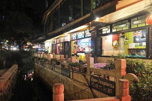 Photo taken on June 9, 2011 shows the exterior of Bar98 on the West Street in Yangshuo, southwest China's Guangxi Zhuang Autonomous Region. (Xinhua/Zhou Hua)