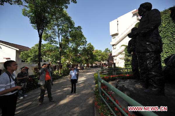 People view sculptures about the Red Army crossing the Chishui River in 1935 at the liquor culture city of Moutai Co. Ltd. in Maotai Township of Renhuai, southwest China's Guizhou Province, May 17, 2011. (Xinhua/Ou Dongqu)