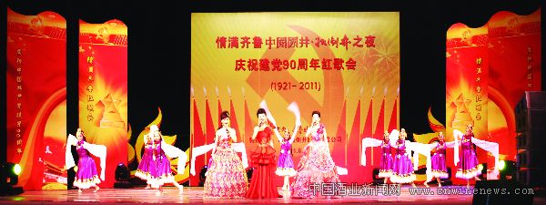 6月1文章来源华夏酒报8日,“情满齐鲁‘中国国井扳倒井’之夜庆祝建党90周年红歌会”在山东剧院举行。随着一支支红歌的唱响,一个个舞蹈翩翩起舞,剧场响起了阵阵热烈掌声。《再唱山歌给党听》、《党啊,亲爱的妈妈》、《红梅赞》、《春天的故事》、《把一切献给党》等一首首耳熟能详、令人荡气回肠的红歌深深地感动了在场的所有观众。