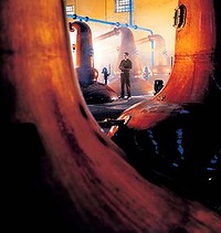 Last come the stills, shapely affairs of shining copper. The new still room at Glenlivet is a soaring, almost church-like space, all lofty ceiling and plate-glass windows overlooking the valley. (''It does,'' Logan agrees, ''feel a bit religious. In fact, the production manager's daughter got married here.'') Stills work in pairs. In the first, you heat what comes out of the washback until the alcohol rises as vapour (or the whole lot can simply froth over, ruining everything. ''Do that once,'' Forsyth at Benromach says, ''and you might survive. Twice and you'll be rolling casks in the warehouse.'')