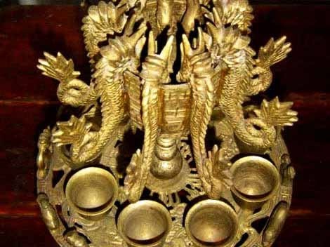The Nine-Dragon Cup appeared in the Qing Dynasty as a wine vessel, in which nine coiled dragons are carved with their tails entwisted. Under the cup there are pinholes connected to the nine tails, which will be full of wine when the cup is filled up. In case the cup is overfilled, the excessive wine will naturally run down. The wonderful design can ensure temperate drinking, demonstrate the spirit of Chinese wine culture, as well as represent the golden mean of traditional Chinese culture.
