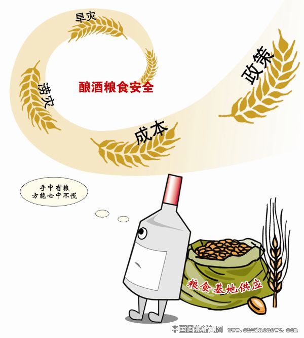 酿酒行业作为粮食的深加工产业,由于用粮较多,全国乃至全球的粮食供给必然影响着酿酒业自身的用粮安全,尤其是粮食酒对粮食价格的上涨敏感度越来越高,应引起行业的重视。