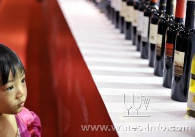 A girl looks at a row of wine products at the expo in Guangzhou, capital of south China's Guangdong Province, June 26, 2011. The 2011 Guangdong International Wine &Spirits Expo opened here on Sunday. A total of 202 wine and spirits producers attended the expo, selling their products to over 20,000 clients from supermarkets, specialized alcohol dealers and restaurants.