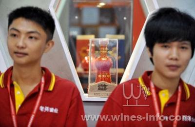 A visitor looks at a bottle of Wuliangye, a Chinese spirits, at the expo in Guangzhou, capital of south China's Guangdong Province, June 26, 2011. The 2011 Guangdong International Wine &Spirits Expo opened here on Sunday. A total of 202 wine and spirits producers attended the expo, selling their products to over 20,000 clients from supermarkets, specialized alcohol dealers and restaurants.