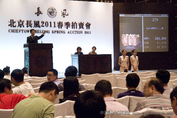 6月21日,北京长风拍卖有限公司举办的2011春拍举行,文章来源华夏酒报其中三场酒类专场拍卖共拍出1906.76万元成交额。