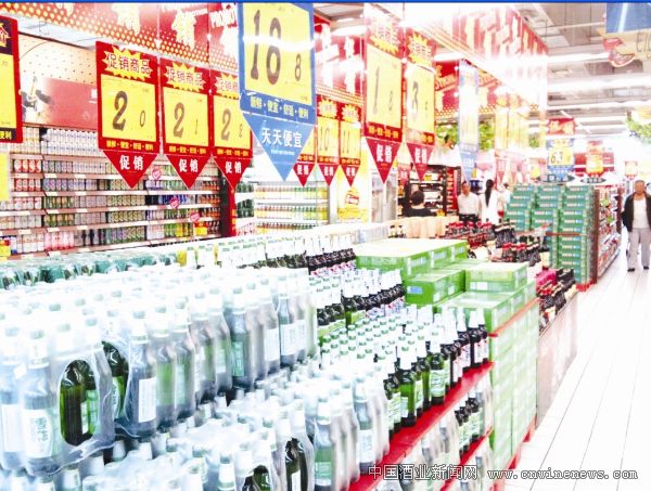 山东省潍坊的沃尔玛超市里摆满了各品牌啤酒的促销堆头,其中300ml听装崂山啤酒47.7元/箱、500ml听装艾尔黑啤67.2元/箱、惠宜醇和啤酒45.6元/箱、8度蓝带瓶啤40.8元/箱、燕京塑包啤酒18.9元/包还赠送洗衣粉等。在超市里,一